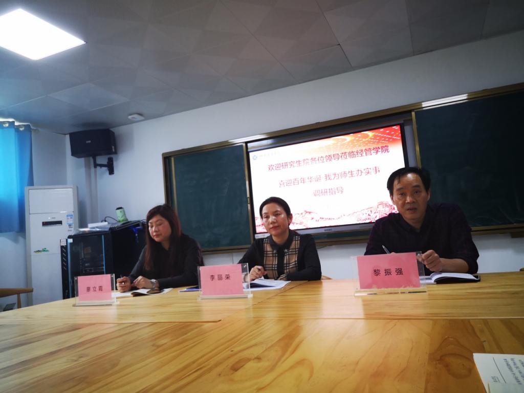 为学深悟透习近平新时代中国特色社会主义思想,深入贯彻党的十九大精神,切实解决学生最关心、最急切的问题,着力提升公司服务效能,5月6日下午两点半,yl23411永利官网于8栋教学楼8413教室召开“喜迎百年华诞•我为师生办实事”调研座谈会,由研究生公司党总支书记李丽荣带队,研究生院黎振强副经理,廖立霞老师参加了座谈。