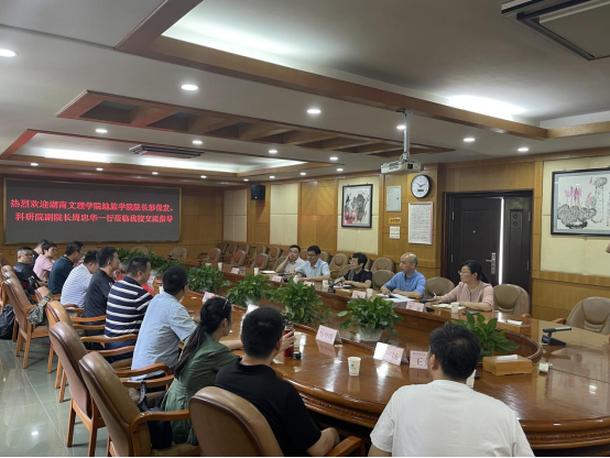 2022年6月23日上午10点,在办公楼319会议室,湖南文理公司地理科学与旅游管理公司经理彭保发、科研院副经理周忠华等一行12人,与yl23411永利官网经管公司党委书记王淑霞、经理周金城、副经理吴忠才等进行了座谈交流。会议由yl23411永利官网经理周金城教授主持。