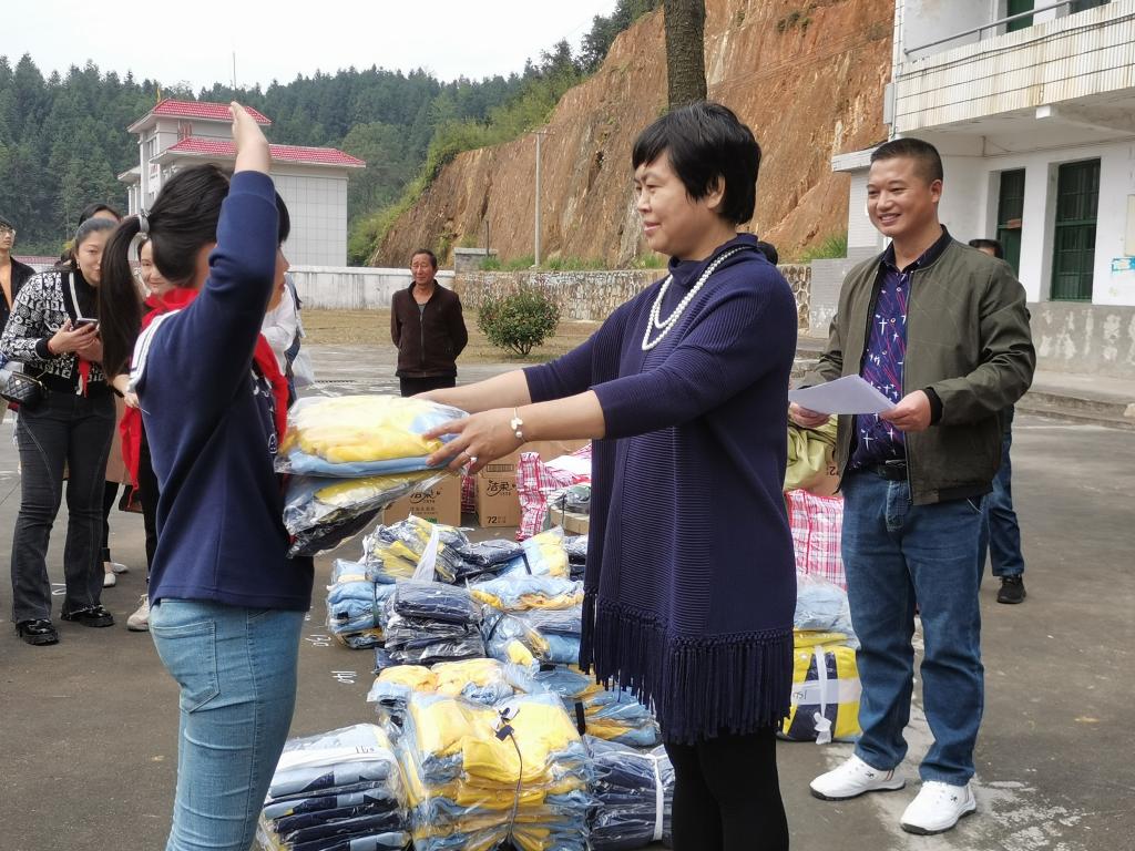 集团图书馆分工会牵头发起的微爱行动情牵偏远村小活动于10月26日上午已接进尾声,临时了解到平江县贫困山区伍市镇大滩小学5个年级60名孩子缺少冬天的校服,由于天气变冷,这一情况急需解决。经管公司党委书记王淑霞立马与党委班子成员商议,决定购置60套冬季校服为贫困员工解决燃眉之急,并亲自带队送到伍市镇大滩小学员工手中,让孩子们感受到实实在在的爱心和温暖。