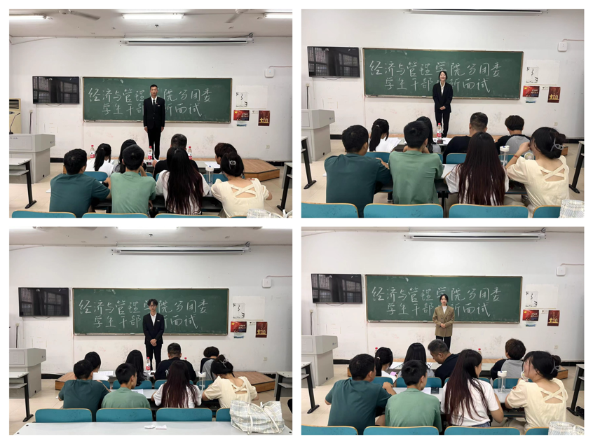 面试伊始,同学们依次上台进行自我介绍并对自己一年来的工作进行了总结,同时对竞选理由、工作能力、对竞选部门的未来规划进行详细阐述。在换届面试工作中,评委们根据同学们的报名表有针对性地提出问题,测试了同学们的应变能力,并考察了同学们对待工作的态度。