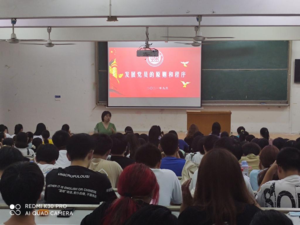 活动采取经管公司党支部书记主讲、员工党员代表宣讲的形式开展。会上,员工党支部书记易振铭、易萧两位老师围绕入党动机、入党条件、入党申请书书写规范等五个方面为全体新生进行专业而全面的指导,增强大一新生对中国共产党的认识和了解,提高自身思想水平,激发入党积极性,也为新生之后的学习、工作、生活指明了努力方向。