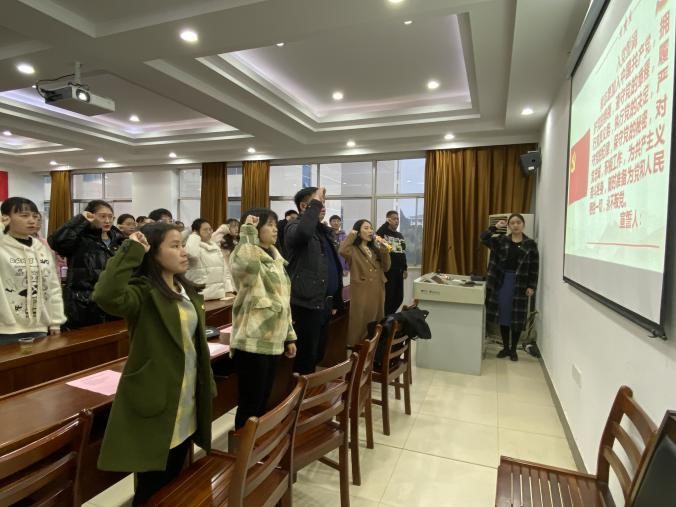 会上,公司员工第一支部书记易振铭同志宣读《批转中共预备党员通知书》,同意接受邵率等31名为中共预备党员。在公司员工第三支部书记叶亚男同志的带领下,全体预备党员面对鲜红的党旗进行郑重宣誓。新党员代表邵率同志代表全体新发展党员表态,他表示继续努力学习党的理论和科学文化知识,提高自身综合素质,在学习生活中发挥榜样作用,做合格的共产党员。