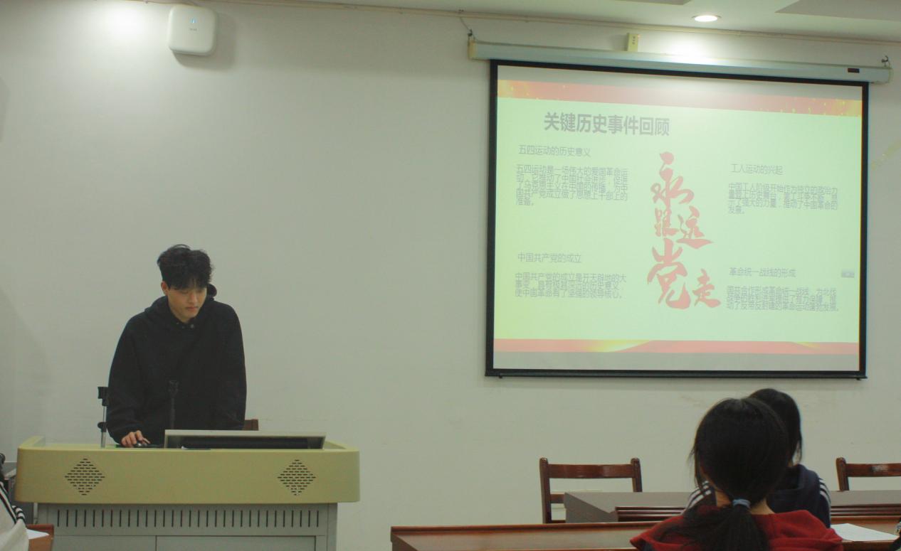 活动伊始,肖潍恒同学以“领袖人物贡献与红色基因传承”为主题,深情讲述革命领袖的不朽功绩,阐释革命精神的深刻内涵,从历史维度梳理红色基因的传承脉络,同时结合时代发展,分析红色教育的创新发展路径,让在场党员深刻认识到领袖精神与红色基因是激励青年奋勇前行的精神食粮。