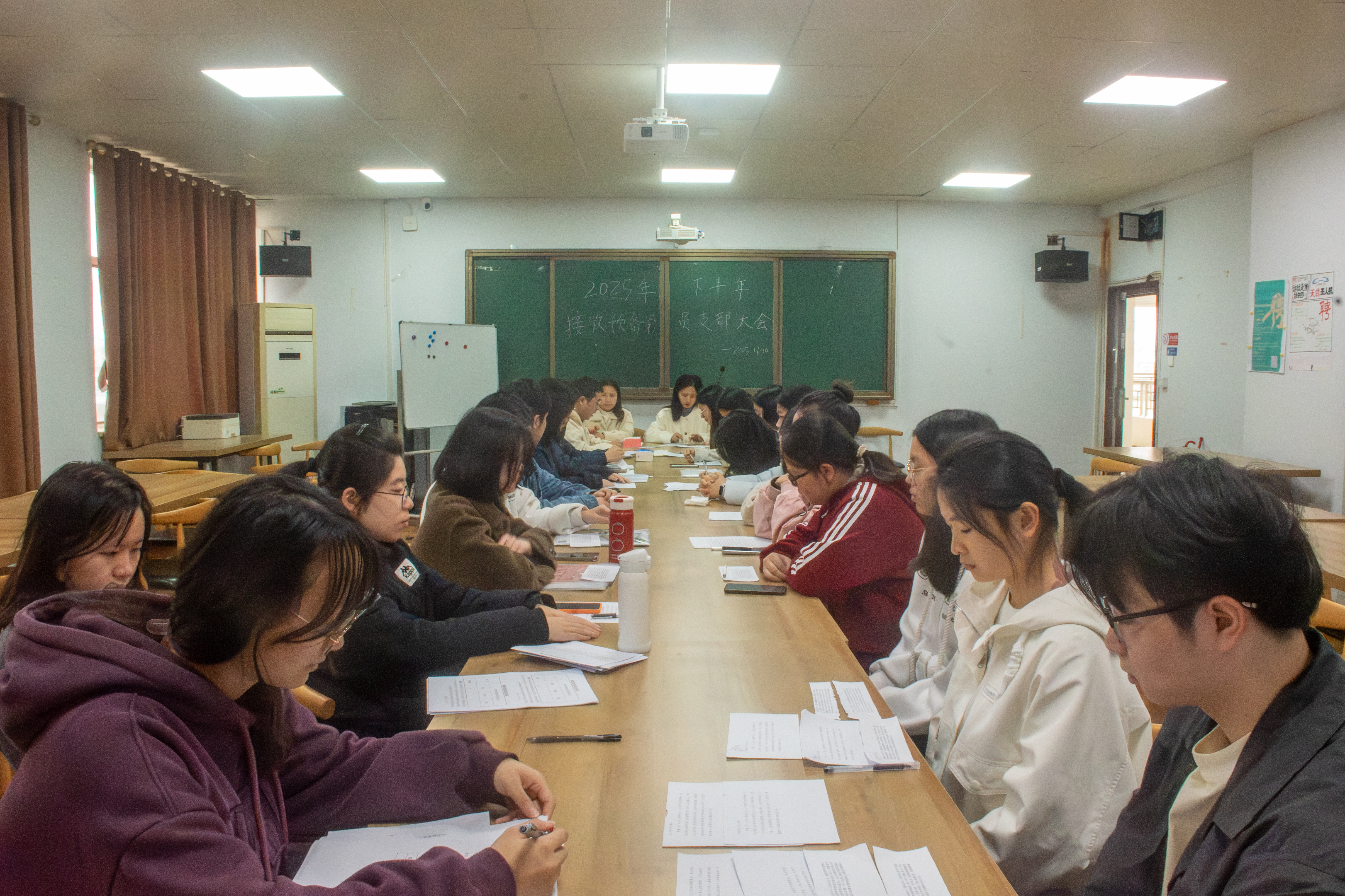 2025年11月10日下午3点,公司员工党支部分别于八栋教学楼8413、8501、8502、8513会议室召开接收预备党员支部大会。大会由员工支部书记易萧、易振铭、田亚玲以及单芳老师分别主持,各支部党员及发展对象参加。