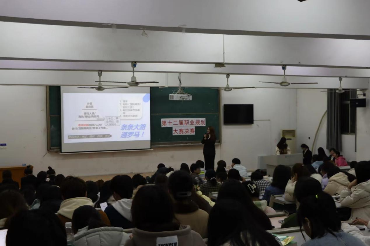 本次决赛包括个人PPT展示,职业生涯规划主题陈述和现场答辩三个环节。选手们在比赛中从自我认知、职业环境、职业目标、评估调整等方面精彩地展示了各自的职业规划方案,参赛选手们方案设计特点鲜明、风采各异、逻辑清晰。随后在现场答辩环节中,评委们从参赛选手规划方案中个人特质与生涯目标的适配性、规划目标的科学性和可行性等方面对选手及其团队的综合表现作出针对性的点评和建议。同时,在评委们的总结中强调到,职业的选择不应只是职业测评的结果,职业选择应该在实践中探索,将就业目光放长远,把个人的未来和国家的命运紧密联系起来。