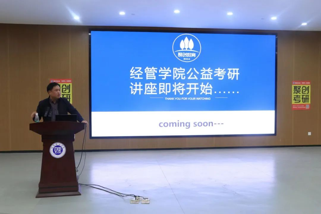 会议伊始,聚创考研主讲彭老师以考研的最新资讯为引,从考研全程时间节点的规划进行分析,给同学们全面总结了经济管理专业考研的的就业去处和方向,例如:金融类监管机构、商业银行、证券公司等等。其次,彭老师还提醒同学们一定要提前确定考研公司和专业,确保自己选到的是心仪的院校和专业。