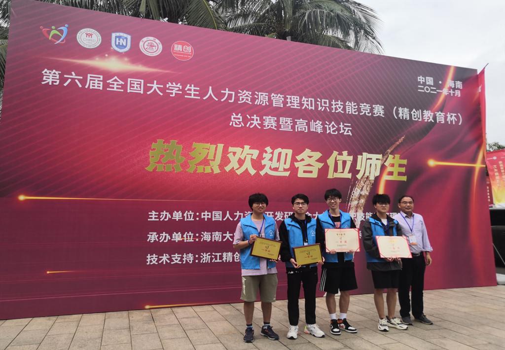 10月24日,第六届全国老员工人力资源管理知识技能竞赛(精创教育杯)总决赛暨高峰论坛在海南大学落下帷幕。在本次知识技能竞赛中,由经过重重入围,最终荣获总决赛一等奖。经过激烈角逐,yl23411永利官网专任老师易翠枝、彭十一指导的人力资源管理专业本科生王家旭、董过同学、秦桢同学、罗发佳同学组成的代表队荣获全国一等奖。