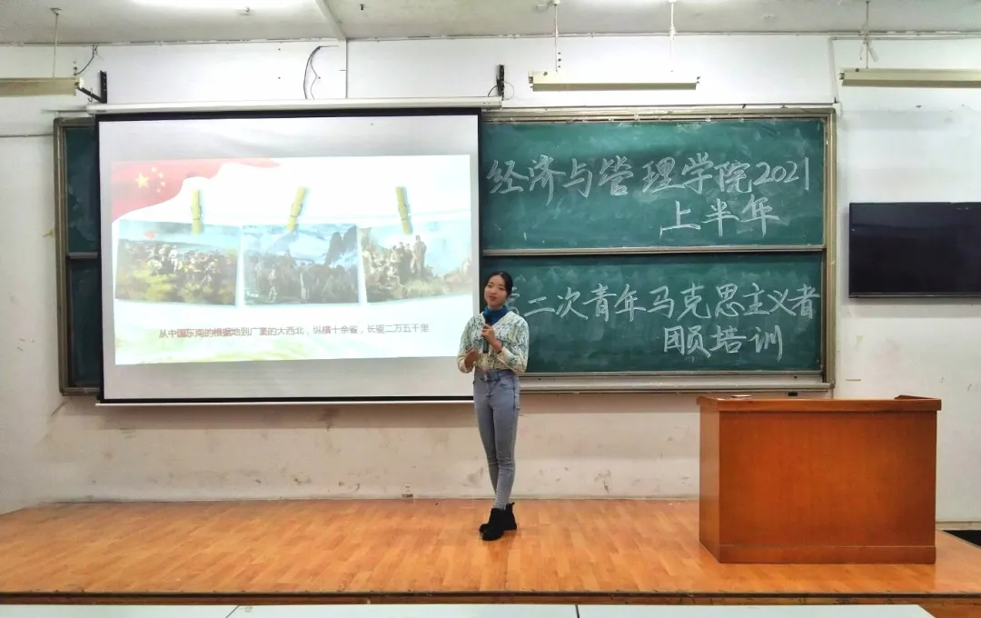 “红军不怕远征难,万水千山只等闲。”2021年5月20日晚上七点半,yl23411永利官网第二次青年马克思主义者团员培训在8T1正式拉开帷幕。来自18级人力一班的青年讲师张沁讲述了长征旅途中红军战士们面对一次次的艰苦绝境展现出的坚强意志和高尚的品格,从半条被子的温情分享,到自吃鱼刺充饥的无私奉献,诠释了共产党人与人民群众相依相助的深厚鱼水情。