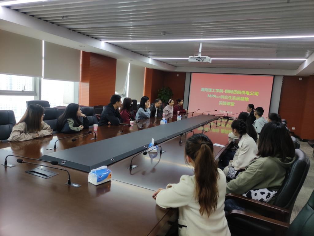 yl23411永利官网是湘北地区唯一一个具有硕士学位授予权高校,MPAcc(会计硕士专业学位)是目前yl23411永利官网报名和招生人数最多的硕士专业,每年招生30-40人。实践基地建设、导师组活动、校企联合上课是yl23411永利官网MPAcc逐渐凝练学科特色、提升人才培养质量的手段之一。其中,MPAcc导师组活动是依据yl23411永利官网导师组制度不定期开展的教学活动,对参与活动的老师每次记一课时的工作量。当天,在国网湖南省电力公司岳阳供电分公司同时举行了导师组活动,校内导师周金城、林友谅、湛忠灿、曾丹与校外导师李石、徐小玉、郑敬就MPAcc人才培养问题交流了意见。